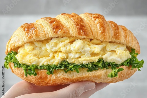 Buttery croissant filled with fluffy scrambled eggs and crisp lettuce