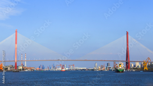 bridge, architecture, city landscape, skyline, river, water, shanghai