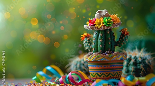 Cactus in a Sombrero A Colorful and Festive Display for Cinco de Mayo Generative AI
