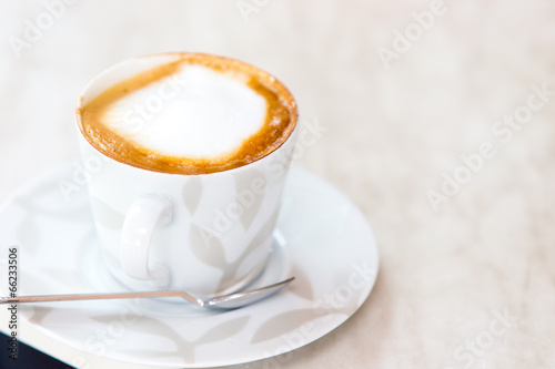 bistro, coffee, cream, thirst, harness, health, drink, handle, coffee, food, spoon, metallic, food, eatery, cream, foam, cup, teaspoon, plate, table, saucer, saucer, hot, drink