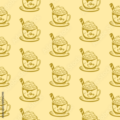 hot drink, cafes, cup, bean, vintage, doodle, pattern, seamless, background, design, texture, abstract, repeating, hand-drawn, artistic, retro, rustic, decorative, whimsical, beverage, mug, espresso, latte, cappuccino, brew, roasted, drink, hot, morning, cosy, aromatic, barista, graphic, charming, minimalist, trendy, creative, cafes, organic, natural, caffeine, vignetting, warm, illustration