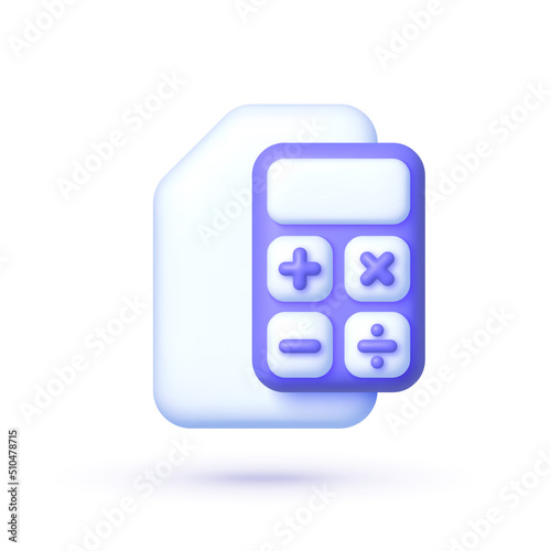 Calculator in 3D style on whit background. Business concept. Financial management concept. Modern 3d graphic. 3d vector render concept