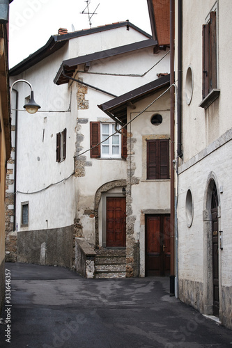 Calles vacias de la ciudad de Gandino en la provincia de Bérgamo, región de Lombardía.