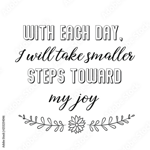 Calligraphy saying for print. Vector Quote. With each day, I will take smaller steps toward my joy.