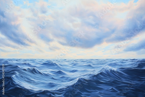 artistry, painting, serenity, soothing, artistic, reflections, peaceful, gentle, oil, fluid, light, atmosphere, ocean, cloud, wave, calm, scene, blue, horizon, sky, texture, water, nature, beautiful, landscape, seascape