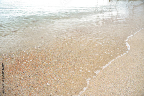calm sea, small waves, clear and transparent water, small sand near the shore