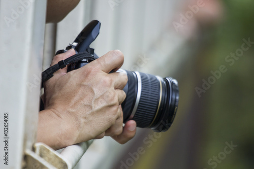 Camera in hand of touris