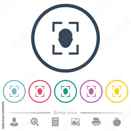 Camera portrait mode flat color icons in round outlines