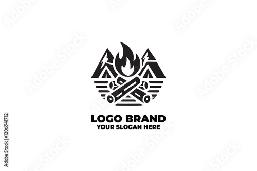 campfire, icon, black-and-white, minimalist, logotype, outdoors, adventure, warmth, fire, simple, clean, nature, inspired, rugged, stylish, creative, bold, graphic design, monochrome, professional, dynamic, unique, functional, elegant, timeless, scenic, artistic, crisp, branding, trail, versatile, camp, rustic, cosy, travel