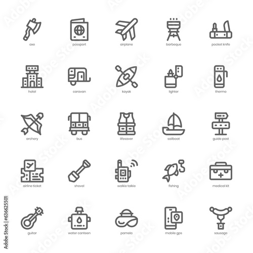 Camping and Tourism icon pack for your website, mobile, presentation, and logo design. Camping and Tourism icon outline design. Vector graphics illustration and editable stroke.