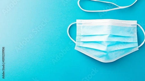 Cancer Toxins concept, A blue medical mask rests on a smooth teal surface, symbolizing health and safety in modern times.