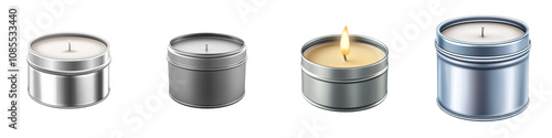 Candle Tin – A Metal Tin Containing a Candle, Often Scented, and Ideal for Travel or Gifting Isolated on Clear White Background Highly Detailed