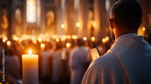Candlelight vigil ceremony historic cathedral spiritual gathering sacred environment intimate viewpoint reflection and unity