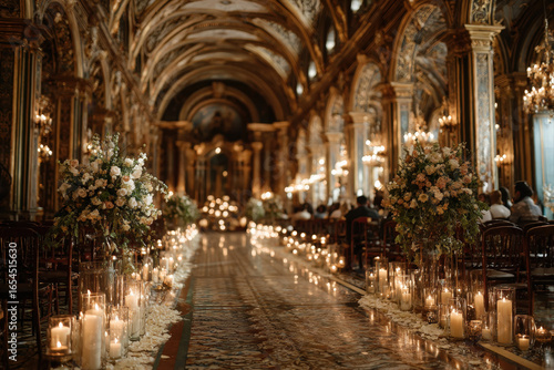 wedding, cathedral, candle, ceremony, aisle, flower, architecture, baroque, elegant, decor, gold, lighting, scene, guest, ornate, grand, interior, romance, celebration, love, marriage, church, glow, soft, floral, luxury, classic, historic, traditional, sacred, spiritual, event, beauty, atmosphere, majestic, grandeur, white, gold, arrangement, opulent, sophisticated, harmony, oneness, serenity, timeless, devotion, vow, exchange