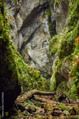 gorge, wall, leaf, limestone, driftwood, tree, fall, autumn, autumn, seasonal, canyon, environment, green, landscape, leaf, light, lush, luxuriant, moss, mountain, natural, nature, nobody, plant, trunk, vegetation, wet, wilderness, wood