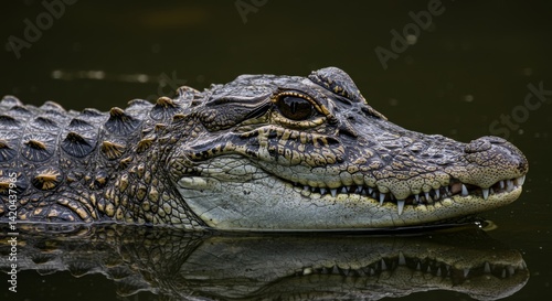 Captivating portrait of a caiman resting peacefully in dark river water