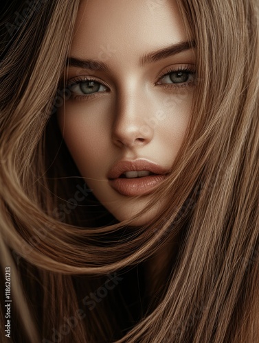 portrait, image, depiction, representation, feminine, model, beauty, allure, charme, elegance, charisma, grace, attracted, visage, face, presentation, appearance, stunning, striking, captivating, enchanting, mesmerizing, gorgeous, lovely, radiant, flawless, skin, hair, brunette, flowing, soft, muted, neutral, tone, studio, photo, fashion, advertising, concept, artistry, aesthetic, optical, glamour, style, trend, showcase, highlight, feature