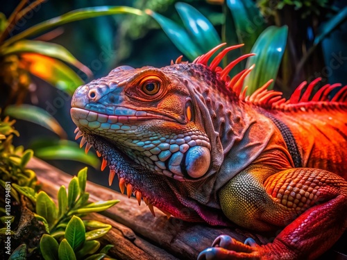 Captivating Red Iguana in a Terrarium: A Glimpse into Exotic Reptile Habitats and Their Care in Documentary Photography