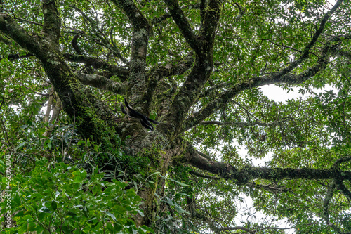 Capuchin monkey in a tree. Tropical plants and trees combinations in Costa Rica, Monteverde rainforest.