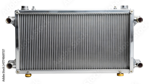 Car radiator isolated on transparent background, showcasing its aluminum construction and cooling fins