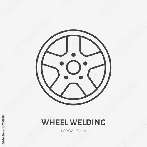 Car wheels flat line icon. Disks welding sign. Thin linear logo for welding services.
