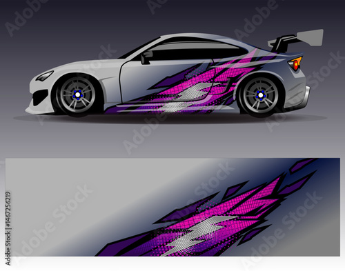 Car wrap design vector. Graphic abstract stripe racing background designs for vehicle, rally, race, adventure and car racing livery