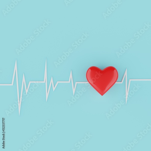 Cardiogram with Red heart on pastel blue background. minimal concept.