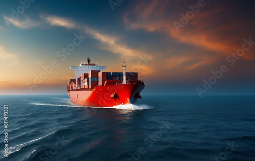 Cargo container Ship, cargo vessel ship carrying container and running for import export concept technology freight shipping sea freight
