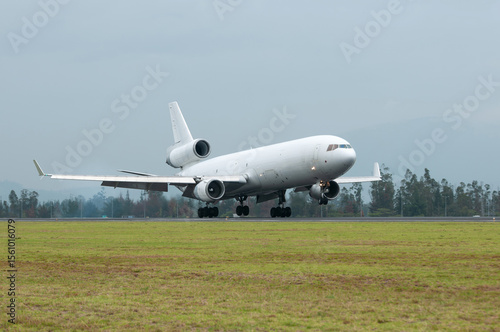 Cargo plane landing on a cloudy day