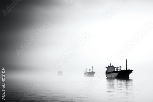 cargo, vessel, industrial, scene, logistic, transport, fog, shipping, trade, water, boat, harbor, freight, import, export, nautical, ocean, supply, chain, economy, infrastructure, terminal, sea, coastal, movement, dock, fleet, marin, landscape, viewpoint, navigation, bay, current, wave, quiet, anchoring, waterscape, transportation, scenic, water, industry, coast