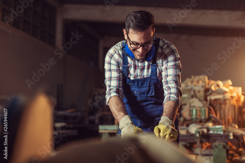 Carpenter doing his job in carpentry workshop