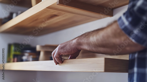 Carpenter Installing Wooden Shelves