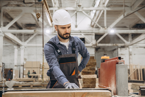 plank, helmet, assembly line, safety, timber, carpenter, mill-hand, bearded, factory, copy space, building material, wood, saw, workshop, warehouse, power saw, timbering, industrial, construction worker, industry, factory, production, craftsmanship, woodwork, man, woodworker, construction, machinery, men at work, manufacturing, prefabrication, modular building