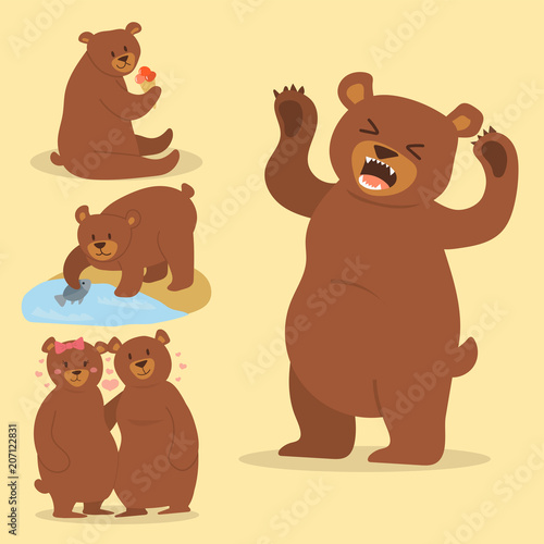 vector, illustration, cartoon, bear, cute, animal, isolated, brown, character, happy, fun, drawing, mammal, teddy, smile, funny, art, wild, grizzly, young, baby, happiness, love, baby animal, cheerful, mascot, sweet, nature, friendly, zoo, collection, adorable, design, smiling, stuffed, toy, joy, sleep, play, couple, fish, eat, water, human