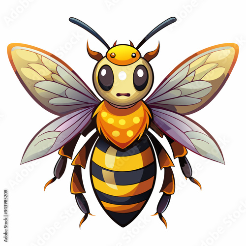 Cartoon Bee with Yellow and Black Stripes and Purple Wings