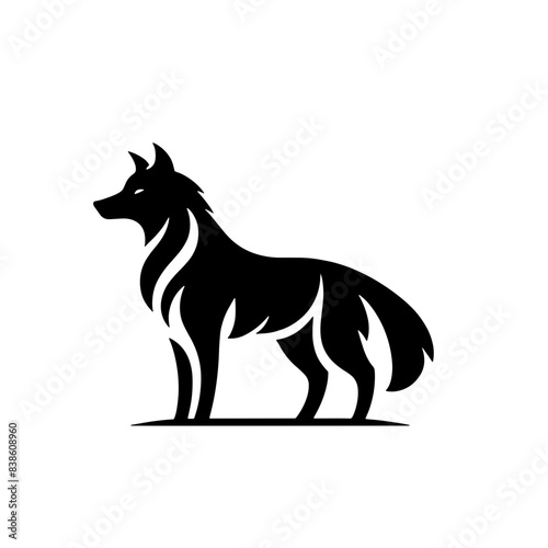 Cartoon Black and White Isolated Illustration Vector Of A Simple Wolf Standing Up