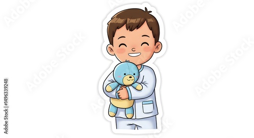 vector, clip art, isolated, graphic, design, flat, illustration, mascot, character, cartoon, line art, hugging, smiling, happy, cute, warm, comforting, boy, children, toddler, bear, teddy bear, toy, stuffed animal, pajama, book, education, card, print, sticker, childcare center, plush, game, asset, logotype, children, children, baby, childhood, friendship, clip art, drawing, friendly, story, tale