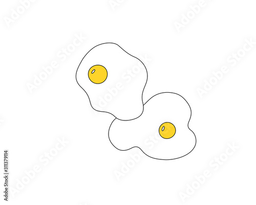 egg, fried, yolk, white, breakfast, food, vector, illustration, cartoon, drawing, albumen, vitellus, outline, yellow, icon, symbol, simple, poultry, chicken, protein, source, isolated, background, design, flat, healthy, organic, graphic, minimalism, element, morning, meal, cracked