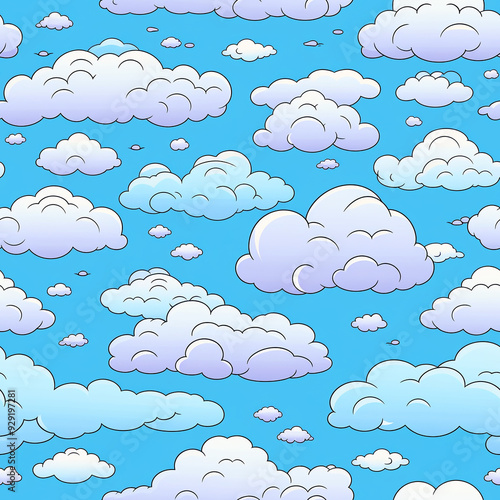 fluffy, blue skies, seamless pattern, sky background, light, airy, whimsical, peaceful, serene, nature, calm, soft, playful, bright, cheerful, blue, weather, atmospheric, repetitive, cloud pattern, cute, dreamy, imaginative, uplifting, cloudscape, gentle, floating, decorative, pastel, serene sky, blithe, sky, cloud, set, wallpaper, seamless, cloudy, design