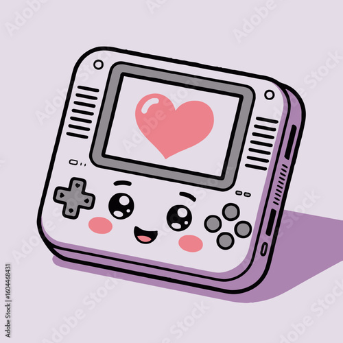 Cartoon handheld game console with a heart on the screen and a cute smiling face on the device