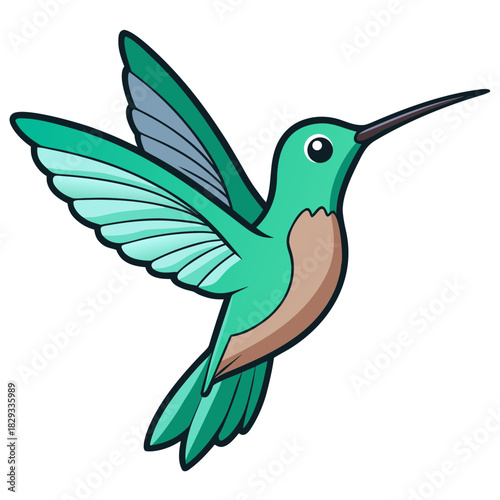 hummingbird, bird, flying, flight, wing, outstretched, teal, green, brown, beak, long, eye, cartoon, illustration, drawing, vector, clip art, animal, wildlife, nature, small, tiny, hovering, motion, speed, graceful, cute, adorable, simple, minimalist, isolated, white, background, graphic, design, art, digital, vibrant, colourful, avian, creature, ornithology, sweet, energetic