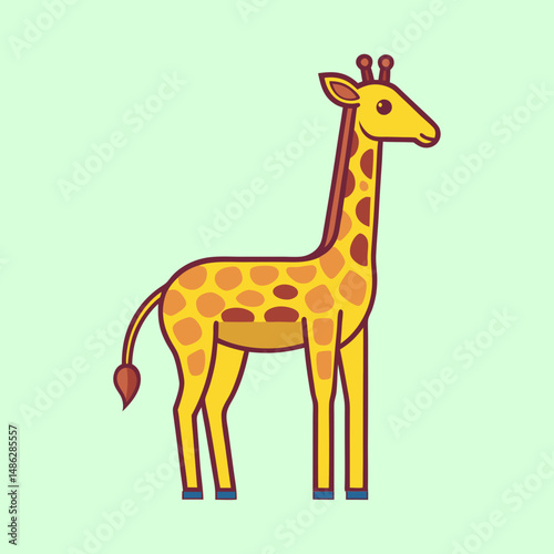 Cartoon illustration of a giraffe standing against a light green background
