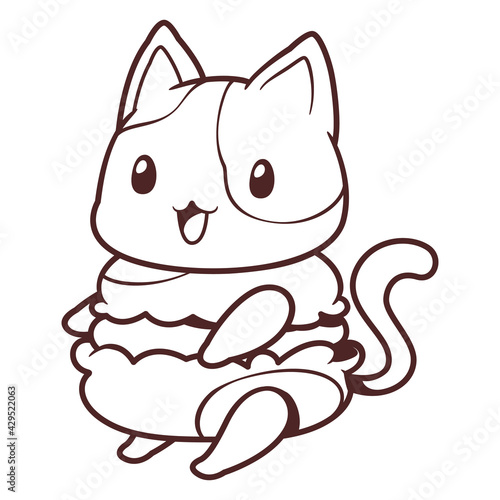 Cartoon line art. Cute cat macaron body doodle. Abstract cute character cartoon. Kawaii style design. coloring page. They are great for decoration or as part of a design.