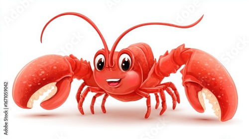 Cartoon Lobster Character with Happy Expression and Bright Colors