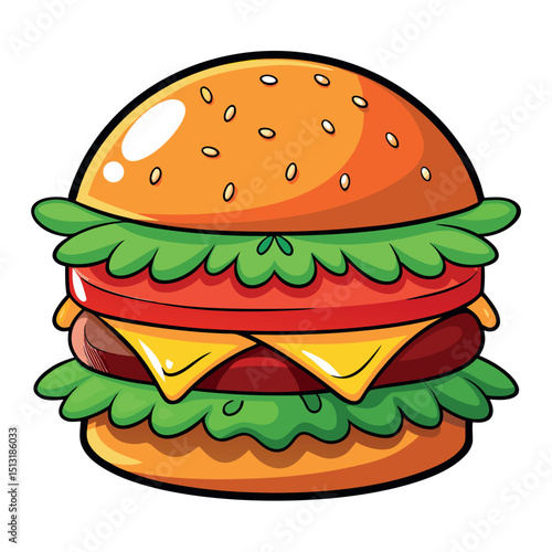 Cartoon of a Delicious Hamburger with Salad, Cheese, and Tomato