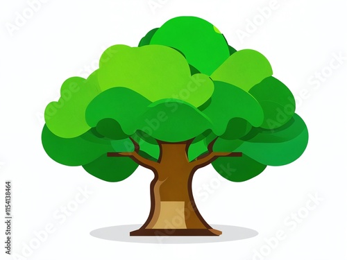 Cartoon tree with vibrant green leaves and thick brown trunk, ideal for nature-themed designs and illustrations