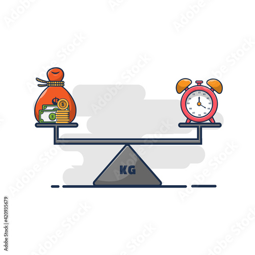 cartoon vector illustration design of money and scales. the design concept of time is money. flat cartoon style