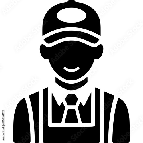 cartoon, vector, illustration, man, helmet, uniform, men at work, police officer, police, character, person, people, male, job, profession, safety, security, law, authority, guard, officer, work, labor, industry, construction, service, icon, design, graphic, art, drawing, flat, simple, style, cartoonish, face, head, clothing, outfit, protective, hard hat, cap, standing, isolated, white