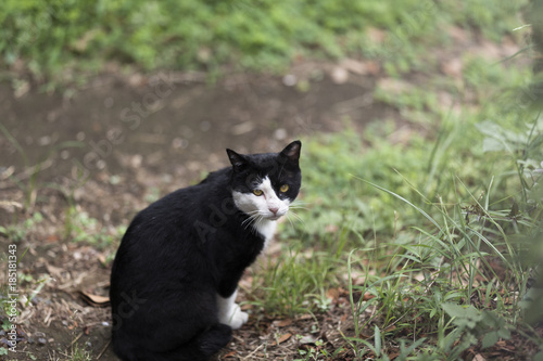 cat, animal, pet, sweet, felino, grass, domestic, green, white, fur, nature, black, mammal, portrait, eye, young, small, garden, outdoors, lawn