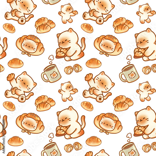 cat, bread, hand-drawn, illustration, food, cartoon, cheese, sweet, art, icon, design, cake, baked, symbol, love, dessert, palette, pattern, seamless